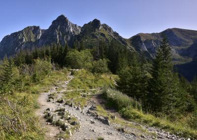 Wycieczka na najbardziej znamy szczyt po polskiej stronie Tatr, ale z mniej znanym szlakiem. Trasa rozpoczyna się odejściem Doliną Małej Łąki do Wielkiej Polany Małołąckiej i dalej Ścieżką nad Reglami na Przełęcz w Grzybowcu. Następnie szlak prowadzi przez Grzybowiec, wychodzi powyżej górnej granicy lasui wspina się stokami Małego Giewontu, przez przełęcz Siodło na Wyżnią Kondracką Przełęcz. W tym miejscu zaczyna się najtrudniejsza część wycieczki – wspinaczka po wapiennych skałach na kopułę szczytową Giewontu (szlaki jednokierunkowy, zabezpieczony łańcuchami). Ze szczytu rozciąga się piękny widok na masyw Czerwonych Wierchów, Tatry Wysokie i Podtatrze. Zejście przez Przełęcz Kondracką do Doliny Małej Łąki. Poza widokami, trasa ta posiada wysokie walory przyrodnicze – jest tu ciekawa rzeźba terenu ukształtowana przez lodowce i kras, oraz bogata roślinność. Przy odrobinie szczęścia można też wypatrzeć kozice.